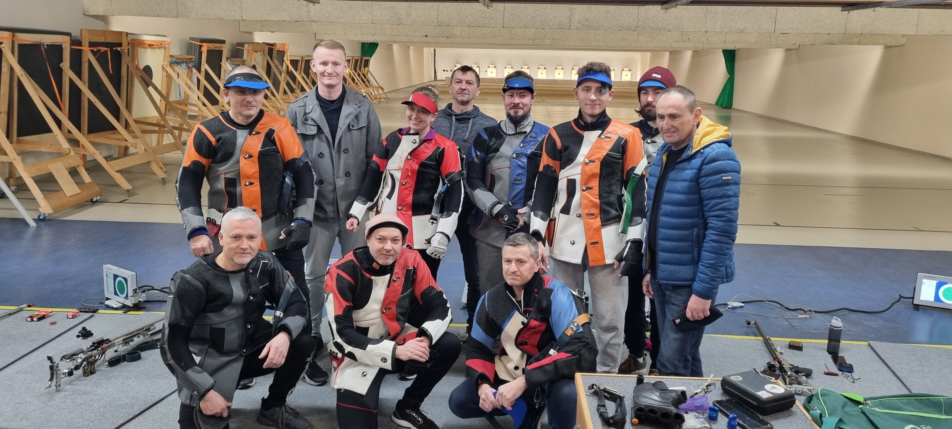 Foto: polnische Liegend-Schützen beim Gruppenfoto (kurz vor ihrem Wettkampf)